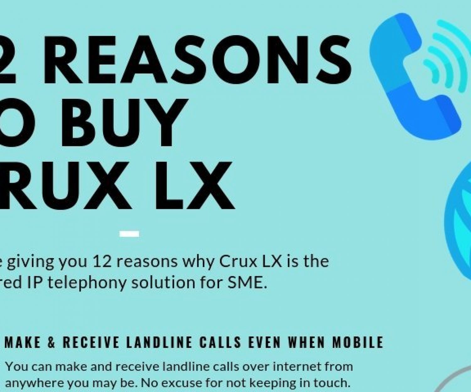 Product 10 Mar 2019 Feature Series #1 – 12 Reasons to Buy Crux LXWe are giving you 12 compelling reasons why Crux LX is the preferred IP telephony solution for SME. admin